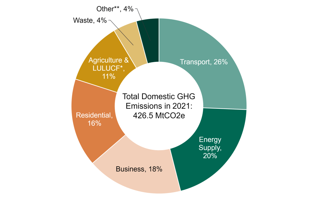 High per capita emissions, a dense transportation network, and challenges in making agriculture more sustainable are key issues. Livestock farming, in particular, contributes significantly to methane emissions.