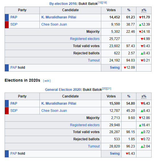 From the By election of 2016 to 2020, SDP has made significant gains ass seen from the picture above. Following this indicator, Chee Soon Juan might stand a fighting chance to win Bukit Batok, although low, support for him has grown rapidly.