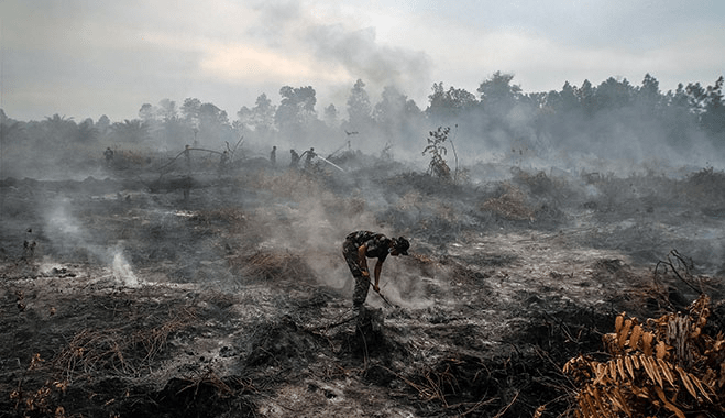 The environmental damage leads to climate change. The clearing carbon rich forest and peatlands for plantation releases significant amounts of greenhouse gases into the atmosphere contributing to increased levels of greenhouse gas emissions.